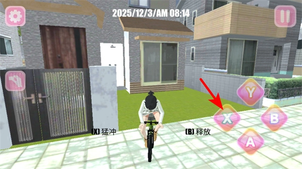 4、骑乘交通工具如自行车后,通过对应按键如X触发猛冲等功能,提升移动速度,同时可点击按键释放交通工具,切换方式适配场景需求。