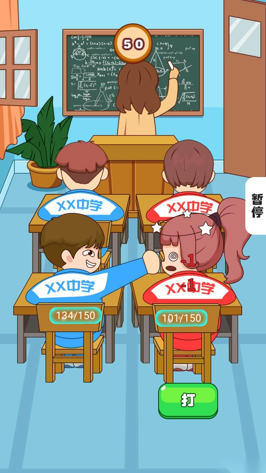 4、进入游戏就可以开始比拼,点击“打”按钮直接攻击自己的同桌