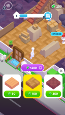 1、等攒够一定资金后,进入房屋装修页面,依据空间规划和个人喜好挑选家具、墙面地板这类装饰,点击确认就能完成布置。