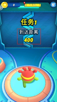 1进入游戏场景后,我们需要操控那个绿色的小家伙向前移动,同时要留意界面上方的任务提示区域,清楚本次挑战的核心目标是让角色抵达400单位的距离位置。