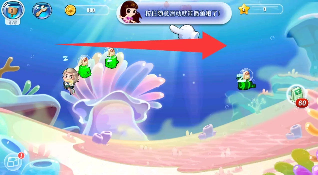 1. 可以自由捕捉小鱼放入鱼缸,收集鱼类并登记到图鉴中,通过喂养小鱼让它们完成完美进化。