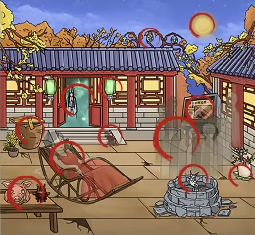 一共有12处可疑的地方,在图中圈出可疑的地方,最终以0元的价格买下四合院。
