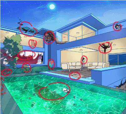 1、我们先借助放大镜,把图片里能找到的所有东西都圈出来。