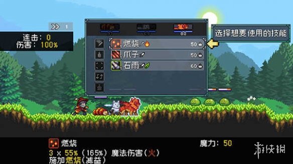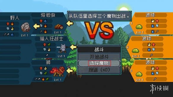 3在地图探索时,一旦遭遇野生魔物便会进入回合制战斗环节,此时玩家需要从自己拥有的魔物阵容里挑选出三只来组建出战小队。