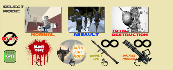 在这款射击游戏里,锤子、棒球棒、枪、手枪、狙击枪、霰弹枪、机枪、rpg、手榴弹、弓、刀、武士刀、炸药等多样武器可供您自由选用,为您的战斗提供助力。