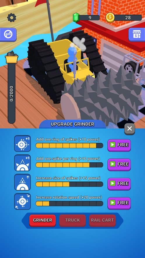 在限定的游戏时长内,玩家要操控一个滚动的轮状物体,尽可能多地采集石块资源。