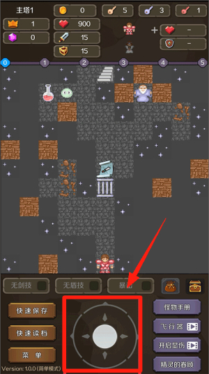 2、随后控制角色在地图里移动,拾取金钥匙、银钥匙、铜钥匙、药水、宝石之类的道具,碰到敌人就发动攻击并将其消灭。
