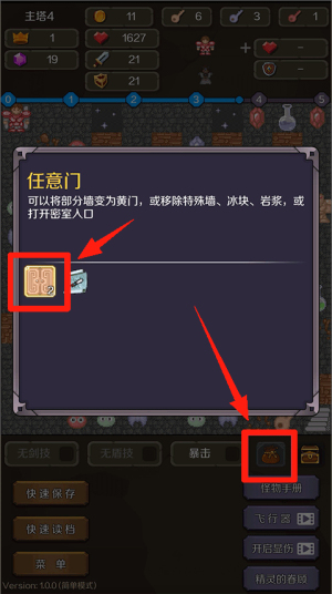 4、获取道具后,能够把部分墙体转化为黄门,也可以清除特殊墙、冰块、岩浆,或是开启密室的入口。