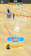 1要启动敌方攻势,可点击【START WAVE4】;战斗开始前,还能花费50美元购买【RANDOM UNIT】来增强己方实力,以便更好地迎接接下来的挑战。
