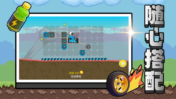 这是一款能自由搭建座驾的竞速游戏,驾驶过程中需要掌控好平衡,冲过坡道、避开障碍还能拾取金币,就算翻车也充满趣味。收集到的金币可以用来提升车辆部件性能,不断挑战更远的距离,刷新自己的记录。游戏采用清新的像素风格画面,玩法让人欲罢不能,既能体验组装的乐趣,又能享受驾驶的快感,快来打造你的专属赛车,去征服各种各样的地形吧。