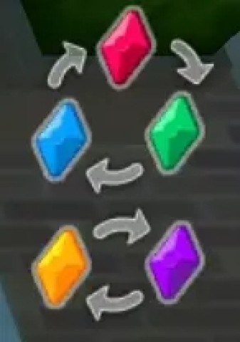 卡牌具备五种属性,分别为红、蓝、绿、黄以及紫。从图中可知,蓝箭头指向红色意味着蓝色卡牌在攻击红色卡牌时会产生额外伤害,相反,红色卡牌攻击蓝色卡牌时伤害则会降低。属性于战斗而言极为关键,当遭遇较强的敌人时,对卡组进行合理配置更是攻略的重中之重。