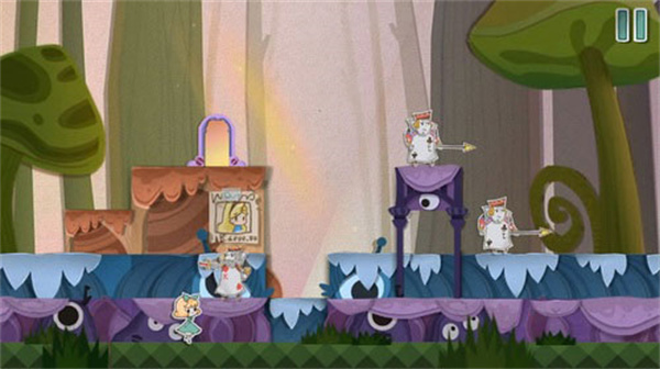 2、吃下变大蛋糕向前移动,可以将扑克兵赶走。