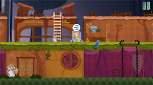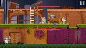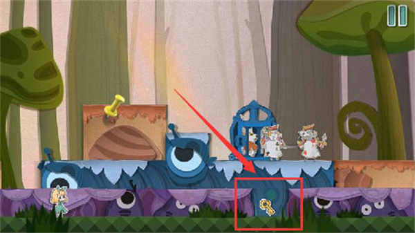 7、从高台上跳下来将老鼠打晕,然后将老鼠放到右边的齿轮动力机里面去。