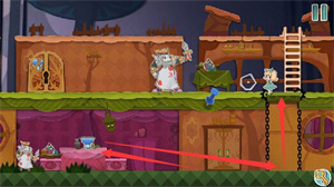 4、将扑克兵赶走,然后喝两次变小药水,进入传送门来到下一场景。
