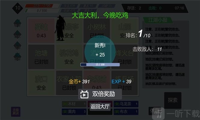 来体验这份别具一格的游戏趣味吧!加入这款江湖题材的小逃杀游戏,你能看到由文字推动的剧情故事,在这里开启你的修仙冒险之旅。游戏里有丰富多样的元素可供使用,只需手指点击屏幕就能完成各类操作,还有众多副本等待你去挑战探索,一步步走出属于自己的成长轨迹,不断提升自身实力吧!