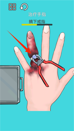 2在任务选择界面找到“治疗手指”这个关卡,点击进入后就能体验到独特的戒指摘取模拟过程。