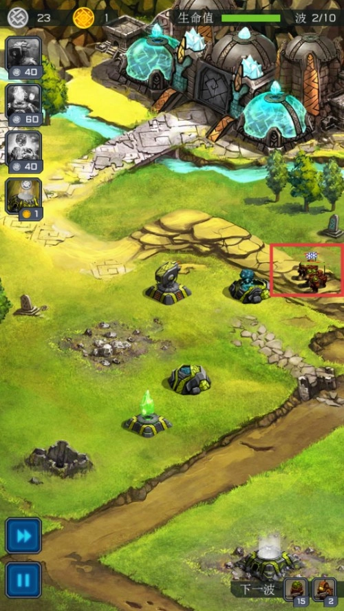 2、选择并建造防御塔,布置防御阵型,抵御敌人进攻。