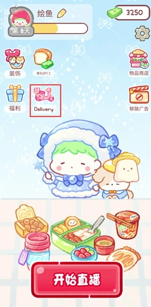 1、打开糖葫芦达人正版,点击屏幕上的Delivery进入到外卖点餐界面;