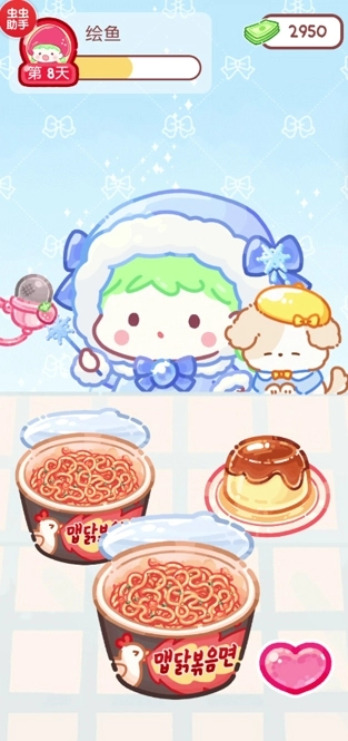 咔哒咔哒!今天的吃播也大成功。热烈的聊天内容看起来反应也不错。看来得利用完成观众任务得到的赞助金来买新材料了!