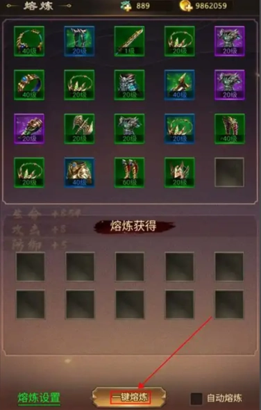 上线后获得的武器,支持一键熔炼,以此来获取品质更优的武器。