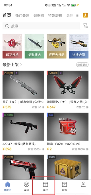 1、打开《网易BUFF》后,点击底部的库存选项。