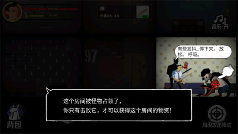 4、部分房间内存在怪物,你得借助武器将其击败,方可获取该房间里的物资。