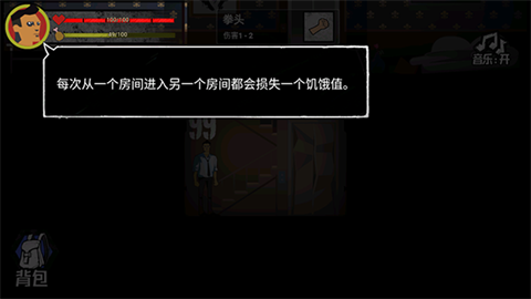 1、每次进入一个房间都会减少1点饥饿值,当饥饿值降至0时,进行任何行动都将消耗2点生命值。
