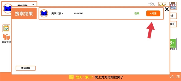 2、找到添加好友选项,输入好友的id号进行搜索。