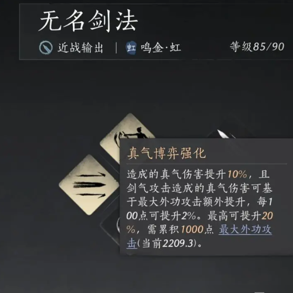 属性堆叠:无名剑法主堆势和会意率,最小外功和属攻无作用,避免资源浪费