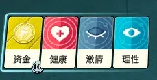 看到这三个属性了吗?你前期的任务之一就是增加这些卡牌的数量,特别是理性——至少要有两张理性,才能保证你赚到钱、活下去。提升这三项属性的优先级永远是理性>健康=激情(毕竟在这个世界里,笨蛋是活不下去的)。