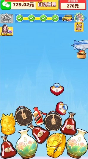 多财人生的玩法采用常见的物品合成模式,只要持续将两个相同等级的物品进行合成,就能快速获取红包;达到一定合成次数后,还能提升兑换比例,后续更可开启自动合成功能,如此便无需手动操作,同时也能享受福利。