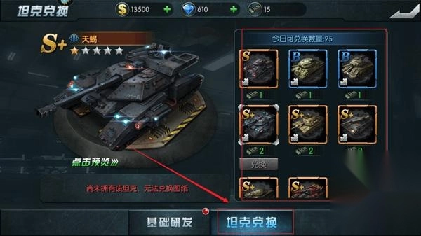 2、也可以通过屏幕首页的研发功能中的基础研发(抽奖)来获取坦克