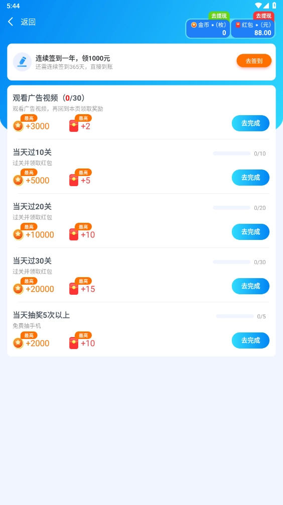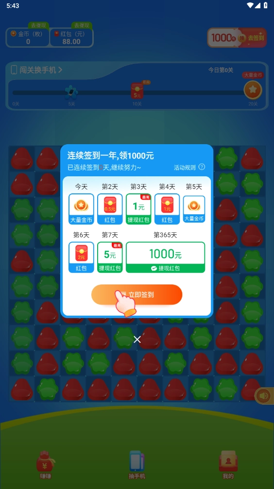 3、持续参与闯关挑战与每日签到,就能逐步积累丰厚奖励,只要达到兑换所需的门槛条件,就能领取相应的红包福利啦!