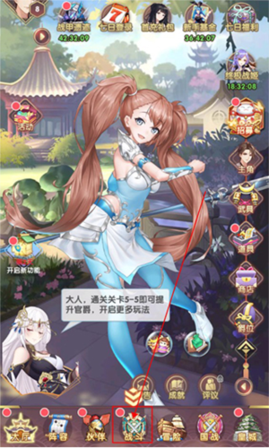 玩家在游戏主页点击下方的战斗,即可进入闯关页面