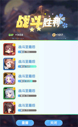 结束战斗之后可以看到每个英雄的输出数据,供玩家参考,还能获得通关奖励。