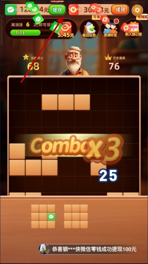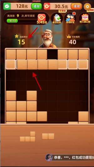 2、每次消除都会获得红包和积分,连击或者同时消除多行都会触发额外的积分奖励,获得更丰厚的红包奖励!