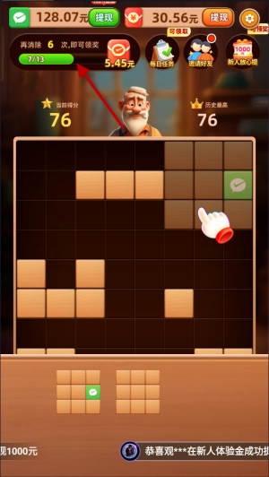 真的可以,上线会有一个教程,跟着教程消除三次之后就会可以直接获得30的红包奖励,按照百分之一的比例计算后就是0.3,刚好够提现的门槛,直接就可以提现到微信账户,实测秒到账哦!