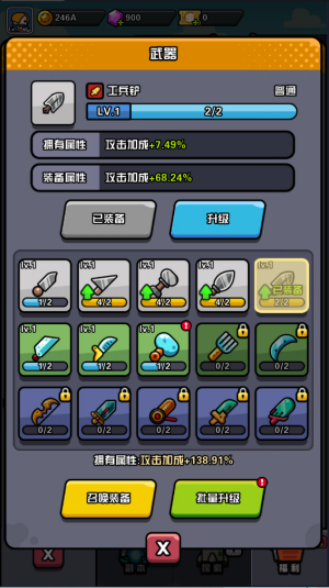 1、丰富多样的特色装备都能通过开箱获取,借助强化与升级的途径增强自身战斗力,从而战胜更多敌人。