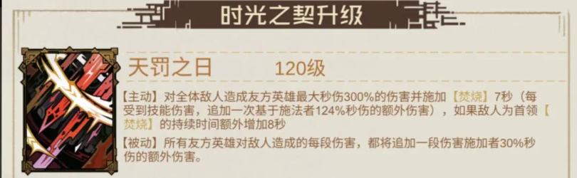 2、核心【天罚之日】: 天罚之日的被动效果可使每段伤害都获得固定30%秒伤的倍率提升;其主动技能则能为每次技能伤害提供124%秒伤的增幅。
