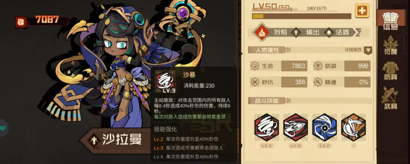 沙拉曼的大招具备全屏输出能力,2级时倍率仅为600%,不过该大招包含15段伤害,触发15次天罚之日被动后,倍率便能提升450%,如此一来全屏倍率就达到了1050%。这可以说是将天罚之日被动效果发挥到极致的大招,若搭配天罚之日主动技能使用,爆发伤害还会更高。