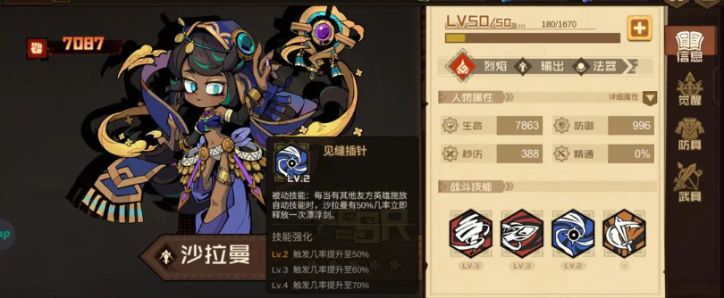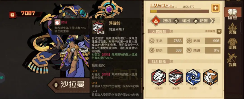 沙拉曼的被动技能能进一步提升自动技的释放频率,每当队友释放自动技能时,都有概率触发一次浮游剑的释放。
