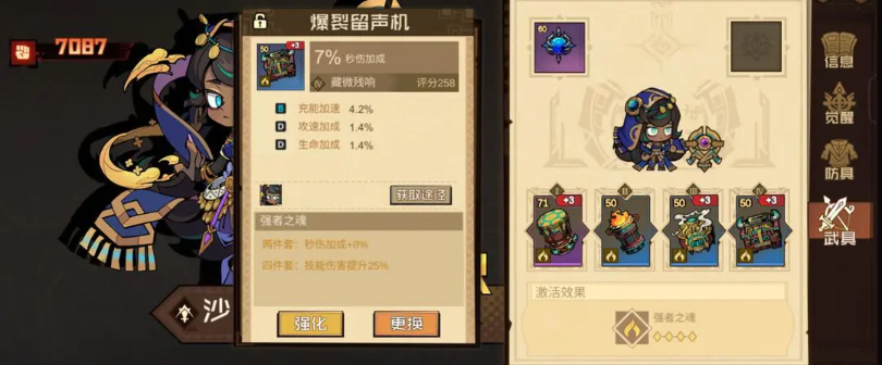 沙拉曼的回响中,能看到沙拉曼的伤害几乎都来自技能,因此回响推荐搭配提升技能伤害的强者之魂。