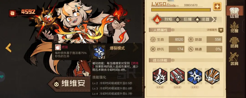 维维安的被动能够缩减自动技能的冷却时间,让自动技能得以更频繁地释放;并且每次释放自动技能时,都有机会触发沙拉曼的被动(该被动需要敌人处于燃烧状态才能触发)。