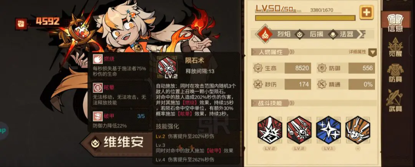 维维安的定位为副C,主要作用是协助沙拉曼挂燃烧效果,通过频繁释放自动技能来触发沙拉曼的被动,同时打出一定伤害,而且她与天罚之日的适配度很高。