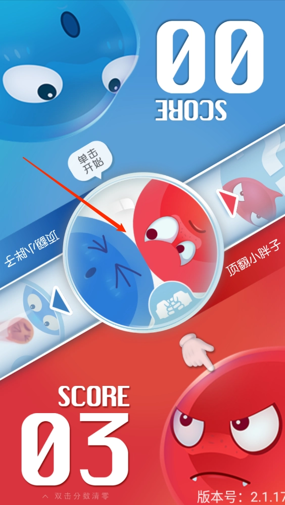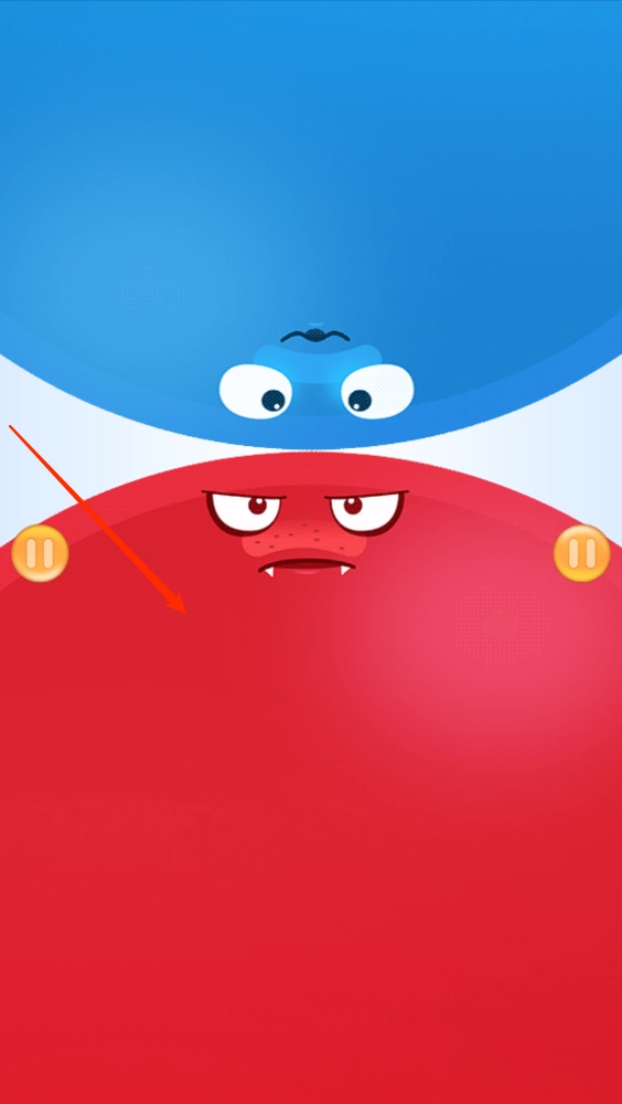 1、游戏是以双人基础的,两人一方操控红色胖子,一方操控蓝色的胖子,点击中间的圆圈即可开始。