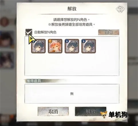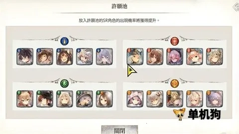 2、游戏中N卡作用有限,可培养的卡牌主要为R卡和SR卡。游戏初始赠送水、土、风属性角色各一名,以及一名光属性角色。