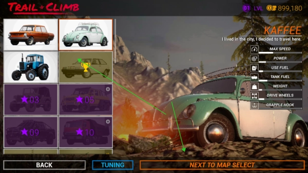 挑选车辆后,点击“next to map select”按钮。