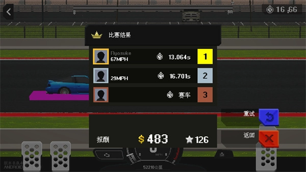 4、比赛结束后,会立即显示比赛结果,并且你也将获得相应的金币奖励。
