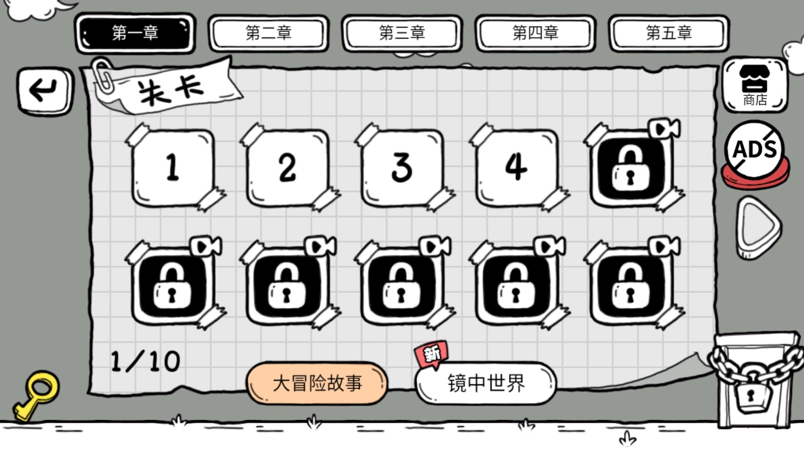 进入主线关卡后,能看到可供挑战的五大章节,每个章节都包含大量关卡。