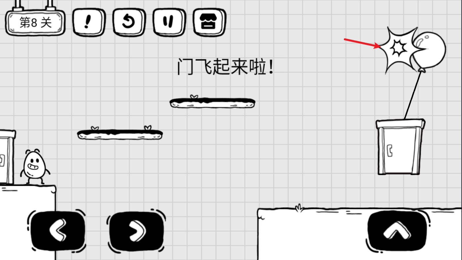 1、第8关:在门飞起来之前,直接点击气球把它打破,之后跳过去就能顺利过关啦。